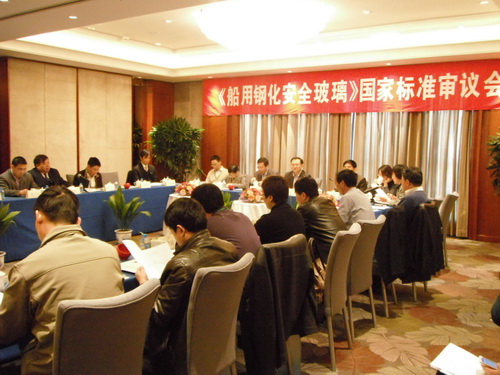 2011年3月11日,全国工业玻璃和特种玻璃标准化技术委员会在江苏省江阴市组织召开了《船用钢化安全玻璃》国家标准审查会。 中国建筑材料联合会副会长、标委会主任委员陈国庆以及来自中国建筑材料联合会、中国建筑玻璃与工业玻璃协会、生产、用户、科研院所、质检机构等单位的23位专家和代表出席了会议。审查会还得到了江阴市市委市政府的高度重视,江阴市副市长张济建和江阴市技术监督局副局长易海红出席会议并作发言。当地电视台、报纸等媒体也派出了记者对本次审查会进行了报道。 《船用钢化安全玻璃》国家标准由中国建筑材料检验认证中心负责修订。审查会上,标准起草人对标准的编制工作做了详细说明,介绍了标准的立项背景、修订过程及试验验证情况。然后专家对标准送审稿进行了逐条逐句的认真审查,认为标准编制组的态度严谨认真,在起草过程中广泛收集、查阅了国内外相关标准及技术资料,技术指标及测试方法科学、合理,试验验证数据充分,提交会议审查的资料齐全、数据真实可靠。审查会专家一致认为该标准达到了国际先进水平,一致同意标准的送审稿,通过并提出了进一步的修改意见和建议,责成标准编制组尽快完成报批稿,报上级主管部门批准发布实施。 随着我国船舶工业的迅速发展,市场对船用钢化安全玻璃的质量要求不断提高,本标准的修订和实施不但能有效指导企业组织生产,而且将为国家相关部门监控该产品质量以及准确评价产品性能提供科学的依据,能够为规范市场、提高产品总体质量水平发挥积极的作用。
