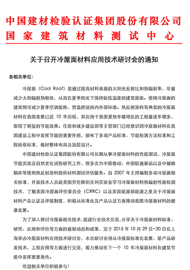 关于召开冷屋面材料应用技术研讨会的通知