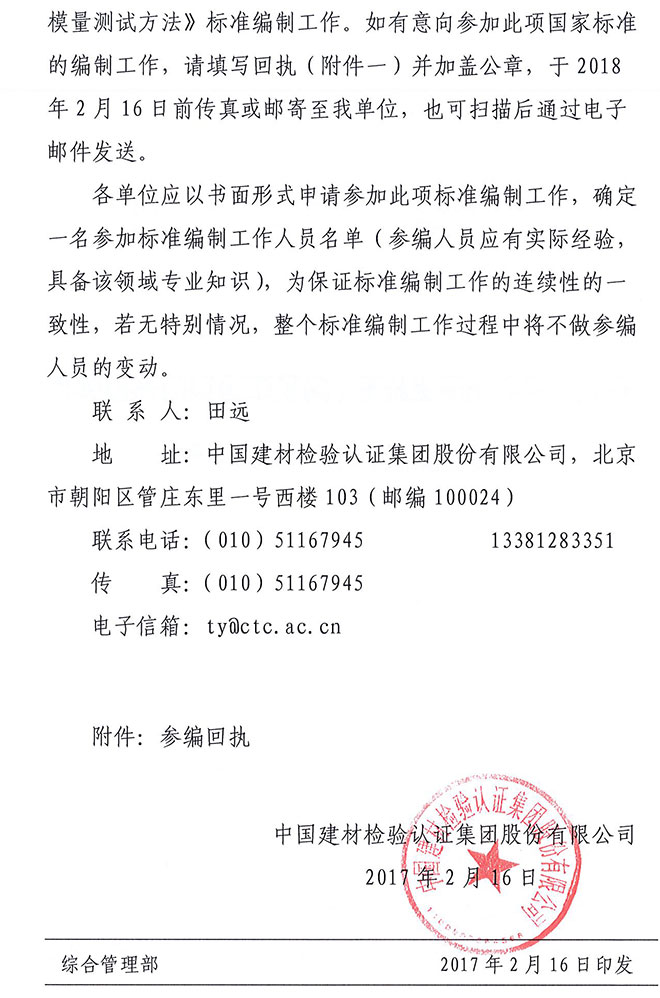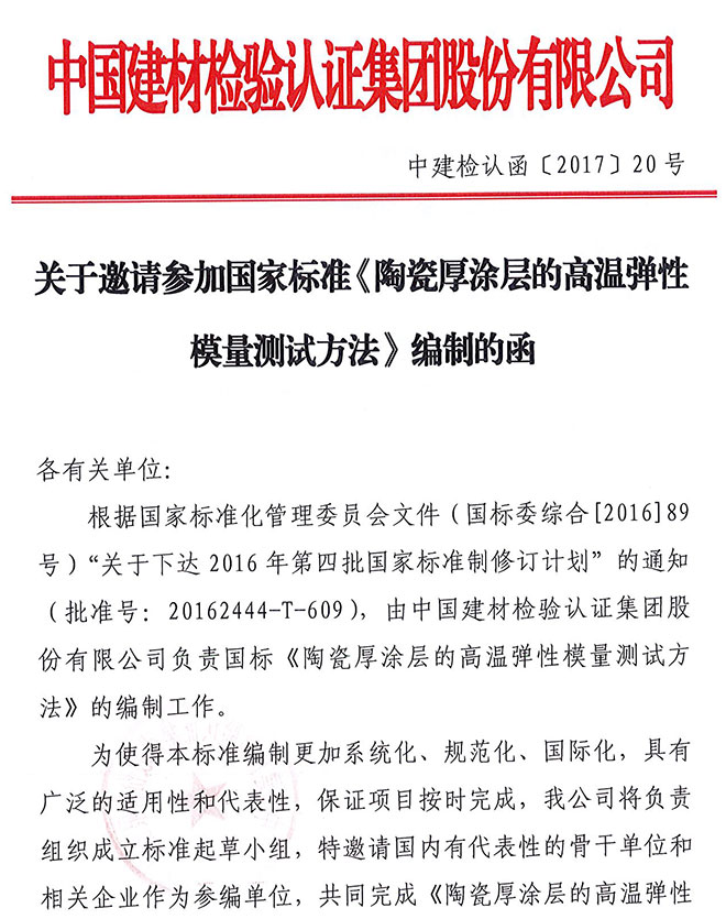 关于邀请参加国家标准《陶瓷厚涂层的高温弹性模量与强度测试方法》编制的函