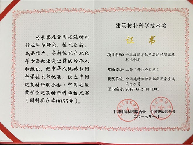 2017年6月17日,由国检集团秦皇岛公司主持完成的项目“平板玻璃单位产品能耗研究及标准制定”,日前荣获2016年度中国建筑材料联合会中国硅酸盐学会建筑材料科学技术奖科技公益类二等奖。 该项目属于标准公益类项目,涉及平板玻璃制造的产品能耗。项目制定了GB21340-2013《平板玻璃单位产品能源消耗限额》国家标准,并已实施,成为监管机构的监管依据。项目旨在通过对平板玻璃单位产品能耗的研究,提出能耗的评价指标、技术要求,推动行业的节能降耗、淘汰落后。