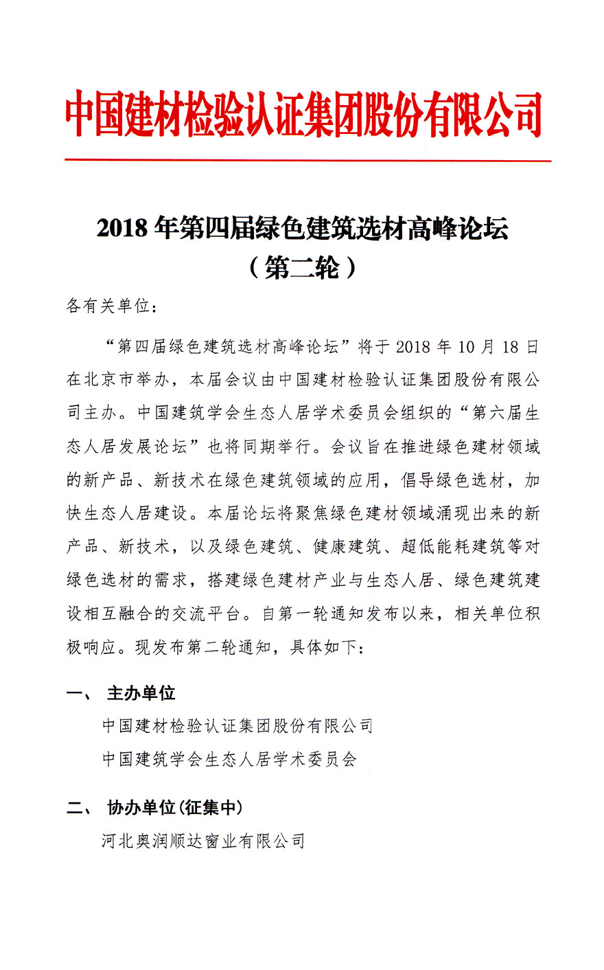 2018年第四届绿色建筑选材高峰论坛(第二轮)