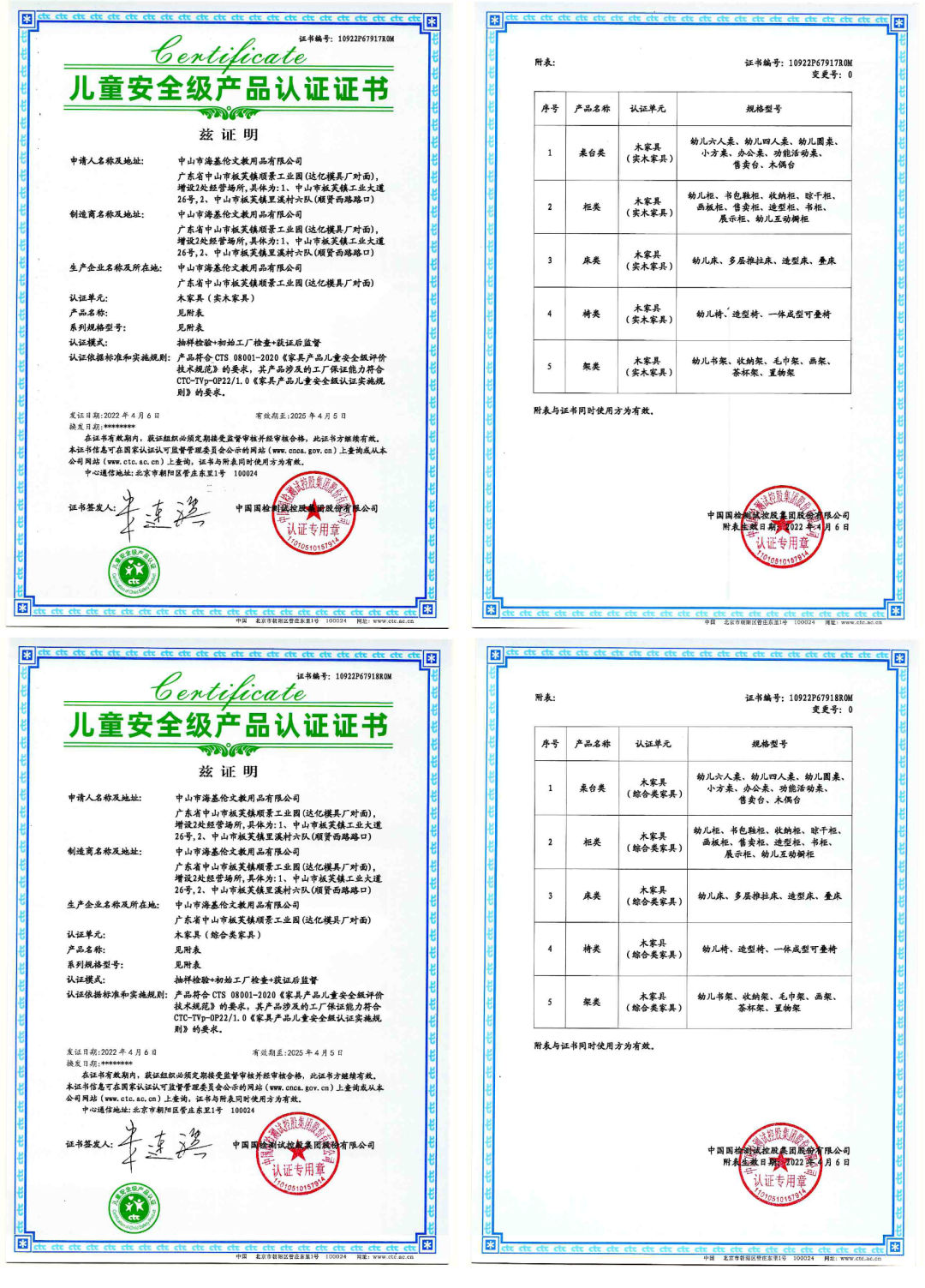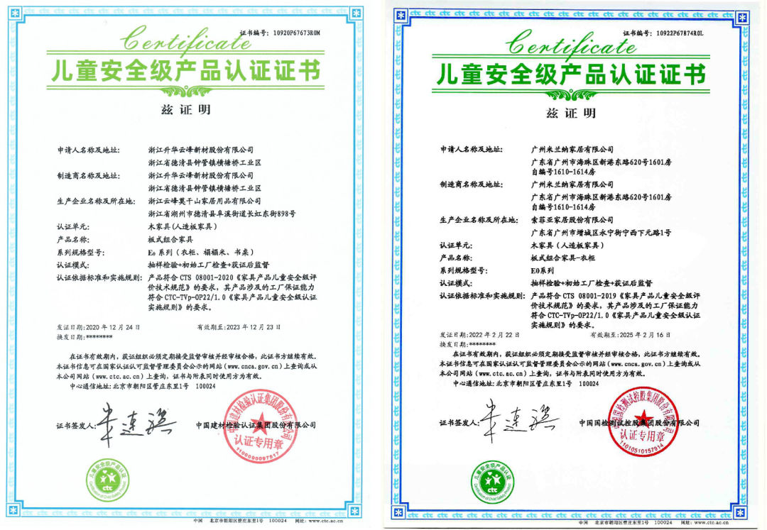 国检集团在2020年首次推出儿童安全级产品认证,三年来,我们不忘初心,积极开展儿童安全级产品认证服务,同时积极拓展新的领域,研发了全屋定制儿童安全级认证项目,并为“索菲亚”“莫干山”等知名品牌颁发了该领域首批认证证书;研发了幼儿园系列儿童安全级认证项目,全方位保障儿童活动场所空气质量及环境安全健康。