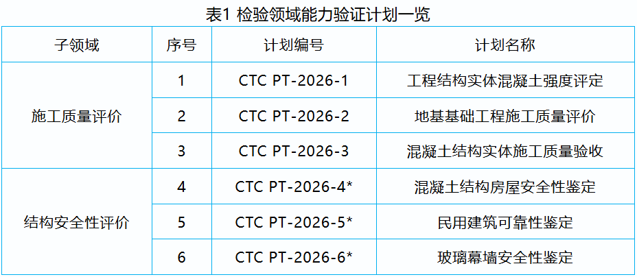 国检集团作为中国合格评定国家认可委员会(CNAS)认可的能力验证提供者(编号 CNAS PT0014)及标准物质/标准样品生产者(编号 CNAS RM0045),在2026年持续拓展能力验证服务,发布能力验证计划245项,涉及CNAS-RL02:2023《能力验证规则》附录B的16类专业领域,包括检验领域(建筑工程)及检测领域(建工建材、金属与合金类材料与制品、岩石和矿石、环境保护、石油及相关产品、煤及相关产品、食品及农产品、化妆品、电气、光伏、玩具及婴童用品、陶瓷、高分子及复合材料、纸张及纸制品、丝、纤维和纺织品)。 1、进一步充实建筑工程检验领域能力验证体系 检验领域建筑工程方向共发布6项能力验证计划,聚焦建筑工程施工质量评价、建筑工程结构安全性评价两个子领域,并全新推出“玻璃幕墙安全性鉴定”能力验证计划。 2、进一步扩展建工建材领域项目 2026年国检集团建工建材领域能力验证计划持续扩容,共发布146项计划,覆盖该领域全部10个子领域:化学分析、物理性能、力学性能、材料有害物质、环境有害物质、热工性能、燃烧性能、光学性能、地基与基础工程检测、结构工程检测。 新增项目紧密对接建工建材领域行业检测需求,包括: 水泥专项:新增“水泥压蒸安定性试验”、“水泥水化热测定”、“水泥组分测定”能力验证计划,细化检测维度,适配行业质量管控与合规需求。 结构安全:关注钢结构焊缝表面及近表面缺陷,新增“钢结构焊缝磁粉检测”和“钢板焊缝渗透检测”2项能力验证计划。 材料安全与环保:聚焦材料中有害物质,推出“防水涂料中苯酚含量测定”和“制品中石棉检测”2项能力验证计划。 道路工程质量:紧密结合施工现场质量控制需求,推出“环刀法测试土路基压实度”能力验证计划。 绿色低碳与节能:响应行业绿色发展需求,新增“建筑外门窗保温性能检测”能力验证计划,助力建筑行业低碳减排目标实现。 为便于各地实验室就近参与,国检集团已在北京、江苏、重庆、广东、海南设立建设工程检测能力验证基地,提供覆盖现场检测特点的多项能力验证服务。 3、聚焦“双碳”与新能源,开展煤炭与光伏能力验证项目 在“双碳”目标背景下,煤的发热量准确测量对温室气体排放核算至关重要。 国检集团2026年新增“煤中有害元素测定”,结合已有的“煤质分析”和“煤中碳、氢、氮”能力验证计划,全面覆盖煤常规分析子领域,支持企业温室气体排放核算需求。 光伏领域发布“光伏组件光电参数检测”能力验证计划,实现对光伏组件光电参数子领域的全覆盖。 4、丰富电气、金属、石油、陶瓷、岩石及矿石能力验证项目 电气领域:共发布9项能力验证计划,新增“电线电缆产品成束燃烧试验”与“锂电池中汞、镉、铅含量测定”,覆盖性能测试、电学试验及有害物质分析三大子领域。 金属与合金类材料与制品:除拉伸、硬度等关键力学指标,还关注材料成分、耐久性能、结构安全。推出“低合金钢化学分析(光谱法)”、“金属材料中性盐雾试验”、“钢筋拉伸试验”、“钢结构焊缝超声波检测”等21项能力验证计划,覆盖化学分析、物理性能、机械性能和无损检测全部子领域。 石油及相关产品:聚焦沥青检测,发布“沥青针入度、软化点、延度检测”、“沥青混合料中沥青含量检测”等5项能力验证计划,覆盖物理性能与化学分析子领域。 新增陶瓷有害元素分析项目:推出“陶瓷铅镉迁移量测定”,覆盖陶瓷领域。 岩石和矿石领域:已发布“石灰石化学分析”和“粘土化学分析”2项能力验证计划,覆盖化学分析子领域。 5、高分子及复合材料、纺织品与纸张领域能力验证项目持续拓展 高分子及复合材料:发布19项能力验证计划,覆盖化学分析、物理性能、机械性能全部子领域。 丝、纤维和纺织品:发布“土工布宽条拉伸检测”与“土工布撕破强力检测”能力验证计划,覆盖物理性能子领域。 纸张及纸制品:推出“室内装饰装修材料壁纸重金属检测”能力验证计划,覆盖化学分析子领域。 6、紧扣民生关切重点,完善环境保护、食品及农产品、化妆品、玩具及婴童用品能力验证项目体系 环境保护:发布63项能力验证计划,新增多项空气与水环境检测项目,包括“空气中氮氧化物测定(水剂样品)”、“水质浊度测定”、“水中磷酸盐测定”、“水中硫化物测定”,覆盖水化学分析与土壤化学分析子领域。 食品及农产品:发布12项能力验证计划,新增“植物油中黄曲霉毒素B1测定”,覆盖微生物、营养成分、重金属、添加剂、毒素五大子领域。 化妆品:发布6项能力验证计划,新增“化妆品中汞元素测定”,覆盖化学分析子领域。 玩具及婴童用品:发布“塑料玩具中增塑剂邻苯二甲酸酯测定”和“涂料中邻苯二甲酸酯类含量测定”2项能力验证计划,覆盖有机化学分析子领域。 特色服务 国检集团能力验证中心常年提供以下服务: 一对一能力验证(测量审核)项目 定制能力验证服务 实验室质量控制用标准样品 实验室管理机构考核用盲样 ISO 17025 实验室认可咨询服务 国检集团将持续贯彻“守正创新 追求卓越”的质量方针,致力于为实验室提供一站式能力验证与标准样品服务,为行业质量控制与高质量发展保驾护航。 联系方式 联系电话: 010-51167792、010-51167483 地址:北京市朝阳区管庄东里1号国检集团大楼5层,100024 微信客服:PT51167792 工作QQ:279855