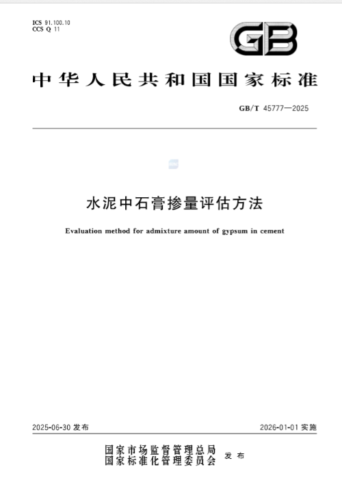 | 标准解读 | GB/T 45777-2025《水泥中石膏掺量评估方法》 |