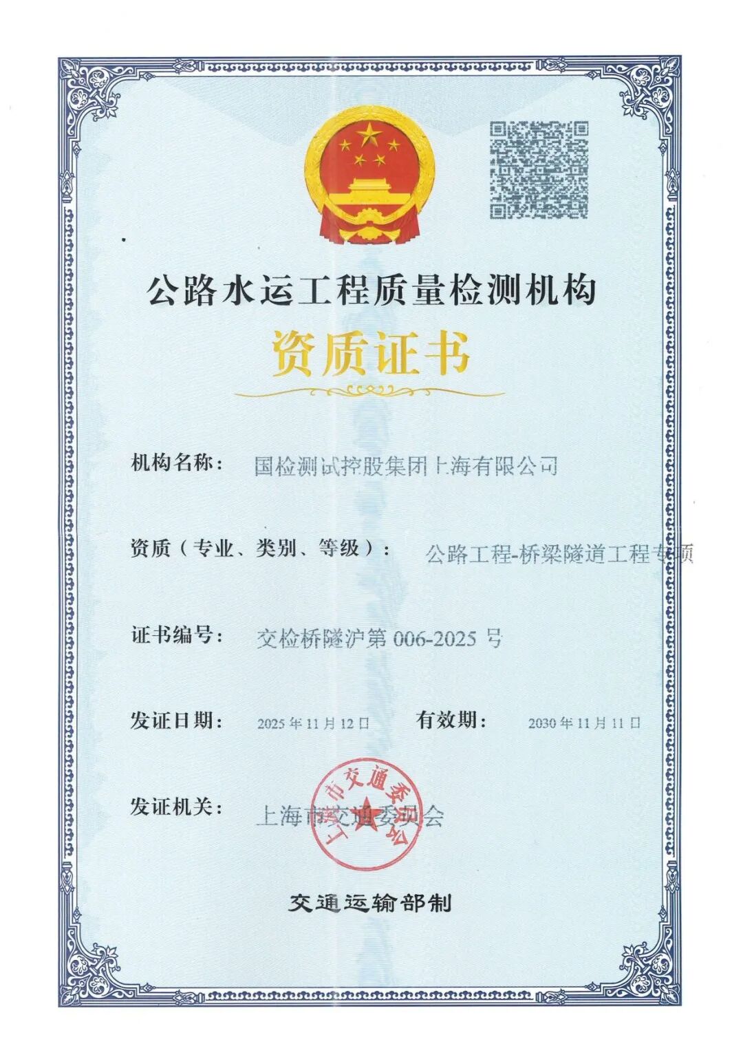 | 资质+1!国检集团上海公司成功获得交通部桥隧专项资质 |