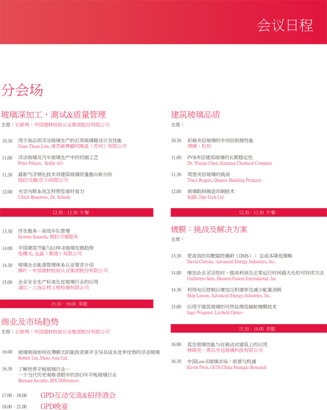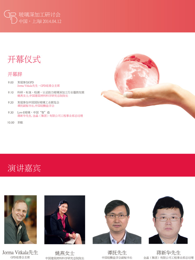 2014年中国玻璃深加工研讨会(GPD China)会议日程发布