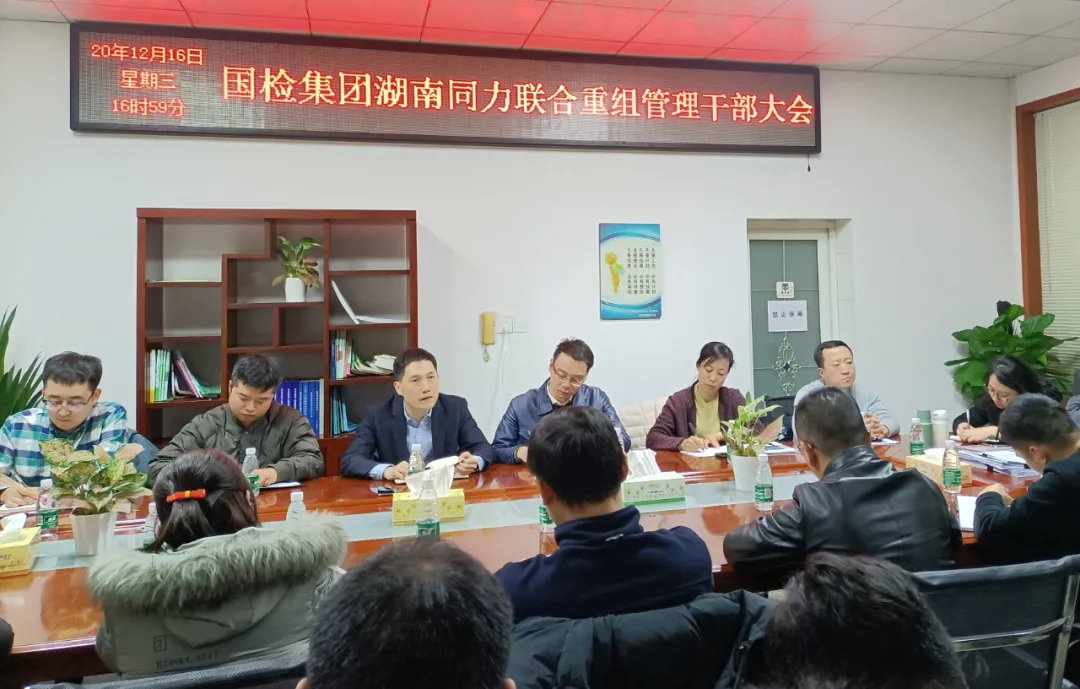 继2020年11月30日国检集团与湖南同力检测咨询有限公司(以下简称“湖南同力”)正式签订股权合作协议后,近日,双方在长沙完成资产交接、管理对接工作,并召开联合重组管理干部大会。国检集团财务总监吕和义、相关职能部门负责人,湖南同力总经理谭文杰及班子成员、职能部门负责人、分公司负责人代表等共同参加了会议。会议由谭文杰主持。