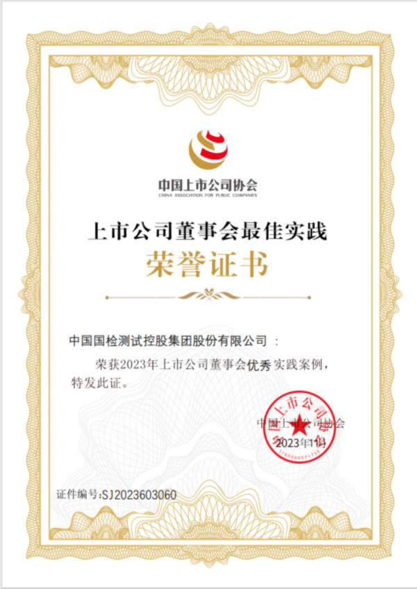 近日,中国上市公司协会发布了“2023上市公司董事会最佳实践创建活动”以及“2023上市公司董事会秘书履职评价活动” 结果,国检集团在两项评选活动中再创佳绩,荣获 2023上市公司董事会最佳实践创建活动“优秀实践案例”, 国检集团董事会秘书宋开森荣获2023年度上市公司董秘履职评价5A评级。 “2023上市公司董事会最佳实践创建活动”的评选依据现有法律法规要求,运用客观指标与案例结合的方式,设置8项基础指标、49个维度及履职创新特色,综合考量上市公司董事会构成、董事会运作及董事会创新特色等内容,旨在进一步促进上市公司董事会合规有效运作,推动提高上市公司治理效能和发展质量。此次入选“优秀实践案例”,充分体现了监管机构对国检集团合规治理及规范运作的高度评价和肯定。
