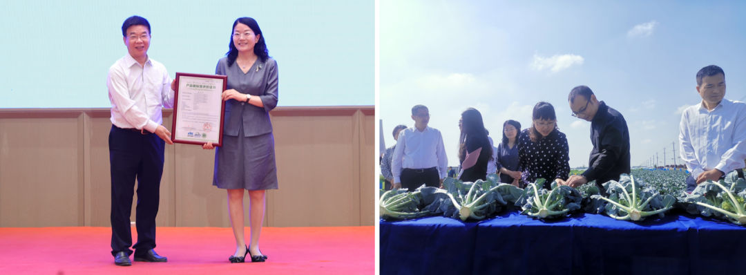 未来,在国检集团“双跨”战略的推动下,国检集团食农事业部将继续通过联合重组增设分支机构,加快建设覆盖全国主要经济活跃区域的服务网络。不断创新“检测+”系列服务模式,努力打造食品、农产品领域知名技术服务品牌,践行央企使命担当,为经济社会高质量发展保驾护航,实现“让生活更美好”的使命! 03 建立农产品碳标签评价体系 自2021年起,国检集团就承担了广州市碳标签评价体系建设项目,帮助建立了广州市碳标签评价体系,编写完成了《农产品碳标签评价通则》,示范评价了4家农产品碳标签,为国内农产品温室气体全生命周期碳排放奠定了基础。同时,国检集团与江苏省农科院共同成立低碳研究院,致力于农业领域减排固碳相关的研究,推动江苏省农业温室气体减排。2023年5月19日,在盐城市响水县西兰花碳标签新闻发布暨“全国名特优新农产品全程质量控制技术中心响水工作站”揭牌仪式上,国检集团联合江苏省农科院共同发出了江苏省首张农产品碳标签证书,国内首张西兰花碳标签评价证书。